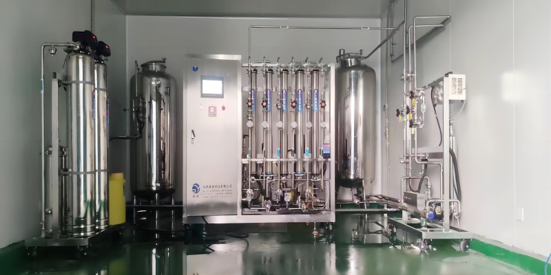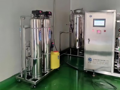 該係統采用了高效的預處理係統(多介質過濾、活性炭過濾、軟化、精密過濾器),可去除原水中的絕大數顆粒物質和膠體(ti) 。再通過滲源雙級反滲透工藝,係統除鹽率高達99.9%。