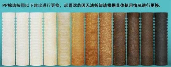 精密濾芯又稱過濾濾芯,分線繞濾芯和PP熔噴濾芯,主要過濾原水中的泥沙等大的顆粒物,其過濾精度有5μm和1 μm等。新的濾芯是白色,如果時間長了表麵會(hui) 淤積泥沙等,呈現褐色,這就表示該濾芯不能用了,用自來水衝(chong) 洗掉表麵淤泥後,可以勉強繼續使用1-2周,但不長期使用。濾芯放在濾瓶裏麵,有的濾瓶是透明的,可以直觀地觀察濾芯的顏色化,有些濾瓶是不透明的,需要將其擰開後才能觀察濾芯的變化。從(cong) 經驗數據統計來看,精密壽命一般在3-6月,如原水的泥沙多,則其壽命短些,泥沙等顆粒物少,則壽命稍長一點。