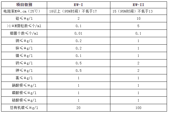 4.1電子級水分為(wei) 四個(ge) 級別;I級、Ⅱ級、Ⅲ級和Ⅳ級。